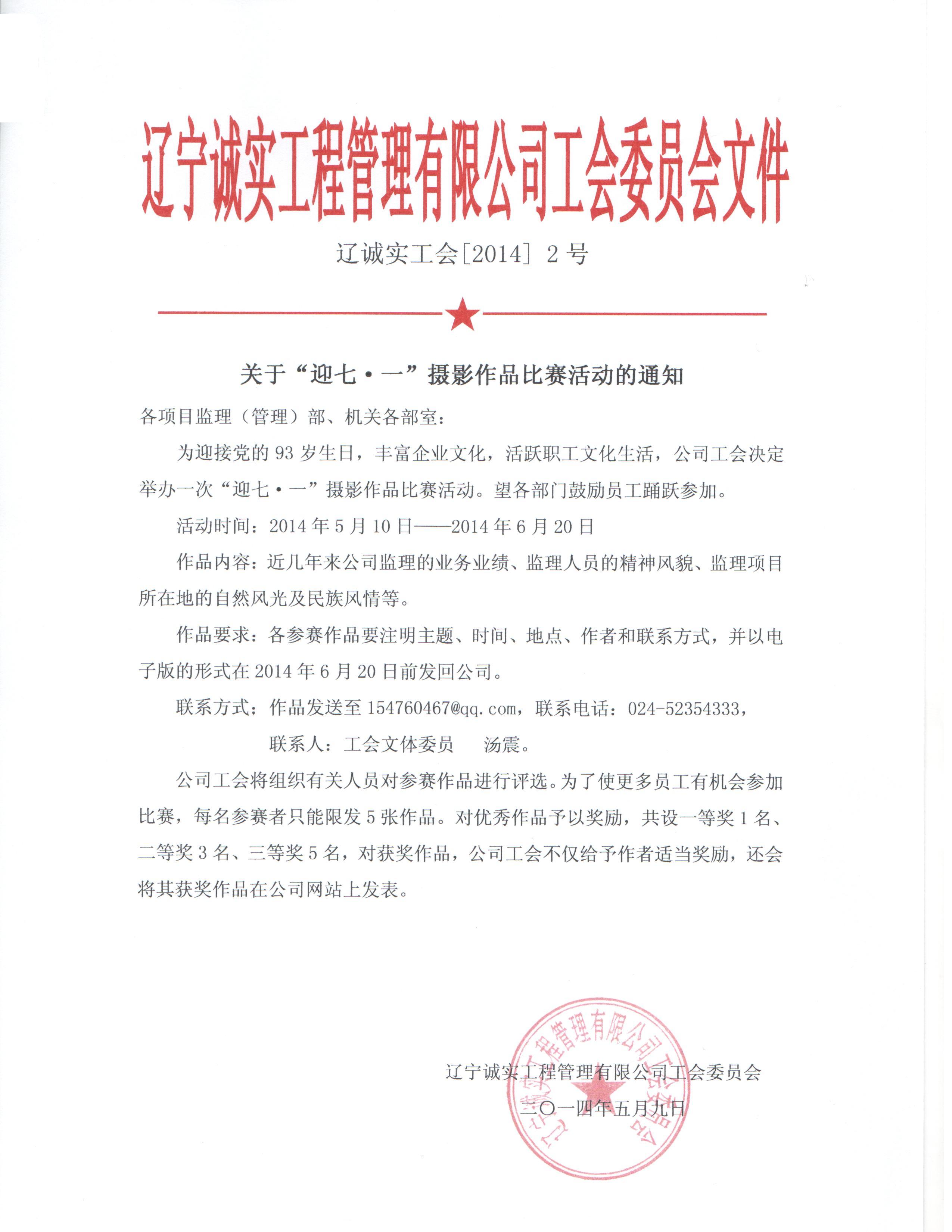为迎接党的93岁生日,工会决定举办“迎七一”摄影作品比赛活动