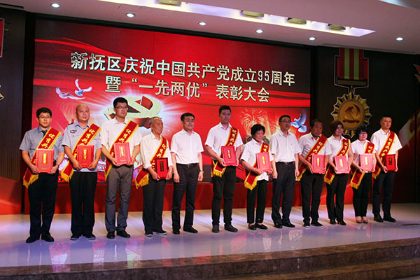 630下午,新抚区召开庆祝中国共产党成立95周年表彰大会,对做出突出贡献的先进党组织,优秀共产党员和优秀党务工作者进行表彰。我公司被授予“先进党组织”荣誉称号,任润东被授予“先进党务工作者”荣誉称号,寻蓝春、谢淑兰被授予“优秀共产党员”荣誉称号。