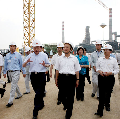 温家宝到中油广西石化施工现场视察