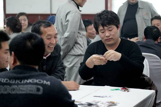公司员工在进行扑克比赛