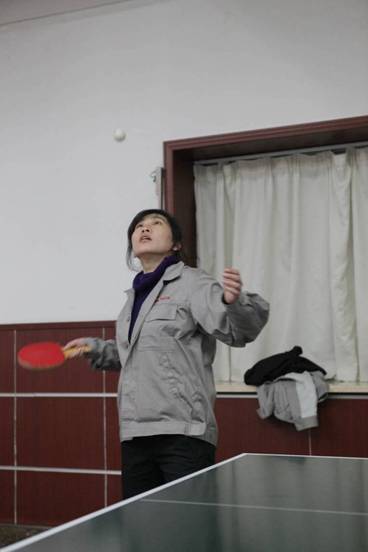 公司员工在进行乒乓球比赛