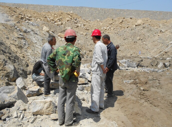 主罐区毛石基础砌筑,姜总指导工作